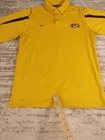 Nike Team Missouri Tigers Polo Men’s M Nike FIT DRY Coaches Staff Yellow Condition: Authentic Nike Team Missouri Tigers staff/coach polo. Small stain and fabric pull visible in photos; priced accordingly. Take into consideration before purchasing. Color: Yellow Size: Medium Please see measurements in photos, and compare to your favorite garment before purchasing. Shirts are kept in sealed polybag to protect garment. All orders ships within one business day of payment. Thanks for shopping.