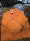 This Nike Life Insulated Parka is the perfect addition to your activewear collection. Made with 100% polyester outer shell material and down insulation material, this mid-length parka will keep you warm and water-resistant during your outdoor activities like walking and hiking. The jacket/coat length is long sleeve and features a zip closure, making it easy to put on and take off. The orange jacket is designed for men's size L and is a regular fit. The jacket is not only insulated but also has a vintage look, making it a perfect choice for those who love outdoor themes. The jacket is made in Vietnam and is a part of the Nike Life product line.