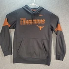 Missing Tag See Measurements In Pics This Nike Texas Longhorns jacket is designed for men and features the team's official colors of orange and gray. Made with Dri-Fit technology, this fleece jacket is perfect for football fans looking to stay comfortable and stylish during the regular season. The long sleeves provide extra warmth and coverage, making it a great choice for showcasing team spirit while keeping cozy. Made in Indonesia, this officially licensed jacket is a must-have for any Texas Longhorns supporter.