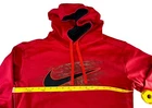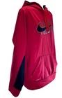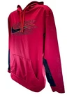 Stay cozy and stylish with this Nike Therma-Fit hoodie in a vibrant red color. This pullover features a round neck and long sleeves with a drawstring closure for a comfortable fit. The hoodie is made of polyester material and comes in a size L with a regular fit. It's perfect for a variety of activities including basketball, football, tennis, cycling, and more. The hoodie also has pockets for added convenience and is hooded for extra warmth. This Nike Sportswear hoodie is machine washable and has a modern and sporty logo accent. Ideal for winter, summer, fall, and spring seasons.