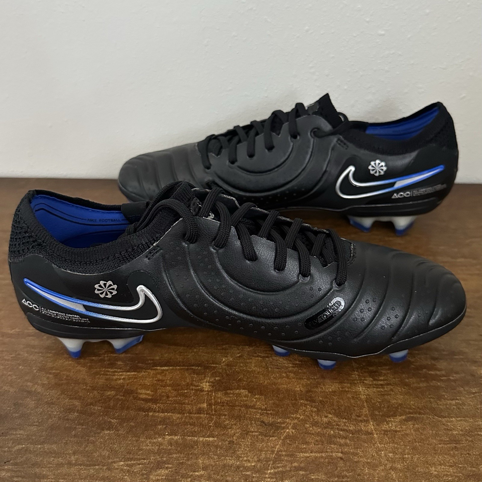 Elevate your game with the Nike Tiempo Legend 10 Elite FG Shadow Pack soccer cleats. Crafted for precision and comfort, these cleats feature a sleek black leather upper and a durable polyurethane outsole designed to grip the field with every step. The low-top design and foam insole offer a comfortable fit, perfect for players who demand both style and performance. Suited for a variety of weather conditions, these cleats are versatile for both practice and match day. The lace-up closure ensures a secure fit, while the royal and sporty theme echoes Nike's commitment to outdoor and athletic leisurewear. Whether you're on the field or off, the Nike Tiempo Legend is a testament to your passion for the game. New without box