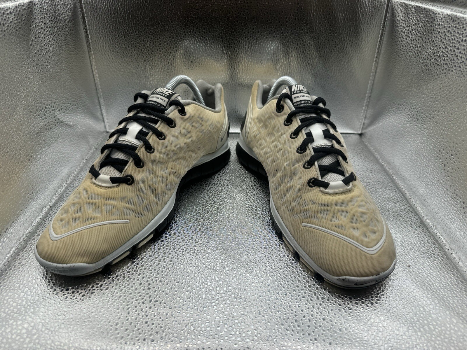 These Nike Free Training Fit 2 running shoes in size 9.5 for women are designed in a low-top style with a solid white color. They feature a lace-up closure, cushioned insoles, and breathable construction, making them ideal for activities like gym training, cross-training, and running. With a standard shoe width and a sleek sneaker design, they offer comfort and support for all-day wear. Perfect for activewear, casual outings, or workwear, these Nike Free Training Fit 2 shoes are a versatile choice for women seeking both style and performance in their footwear.