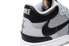 The Travis Scott x Nike Mac Attack SP ‘Cactus Mac’ delivers the Houston rapper’s take on the ‘80s tennis shoe worn by John McEnroe. A reverse black leather Swoosh adorns the lateral side of the upper, featuring breathable mesh underlays in black and grey mesh. Grey leather overlays reinforce the forefoot and heel, while black leather wraps around the padded mid-cut collar. Branding elements include a checkerboard Nike tongue tag and an embroidered Cactus Jack logo on the back heel. Anchoring the sneaker is a durable rubber cupsole with white sidewalls and a grey rubber outsole.