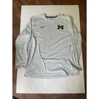 Elevate your casual wardrobe with this Nike University of Michigan t-shirt. Perfect for showing school spirit or hitting the gym, this gray Dri-FIT tee combines comfort and style. Ideal for game days, workouts, or everyday wear, it's a versatile piece that represents both athletic performance and collegiate pride. Show your Wolverine spirit in this comfortable, breathable shirt. Type: T-Shirt Color: Gray Department: Men Fit: Regular Sleeve Length: Short Sleeve Character: University Mascot, College Logo Pattern: Solid Character Family: College Sports, University Apparel Features: Moisture Wicking, Lightweight, Athletic Neckline: Crew Neck Material: Cotton Blend Fabric Type: Jersey Keywords: Nike, University of Michigan, Dri-FIT, Men's T-Shirt, Gray, Athletic Wear, College Apparel, Wolverines, Casual, Comfortable, Breathable, Sports, Gym, Workout