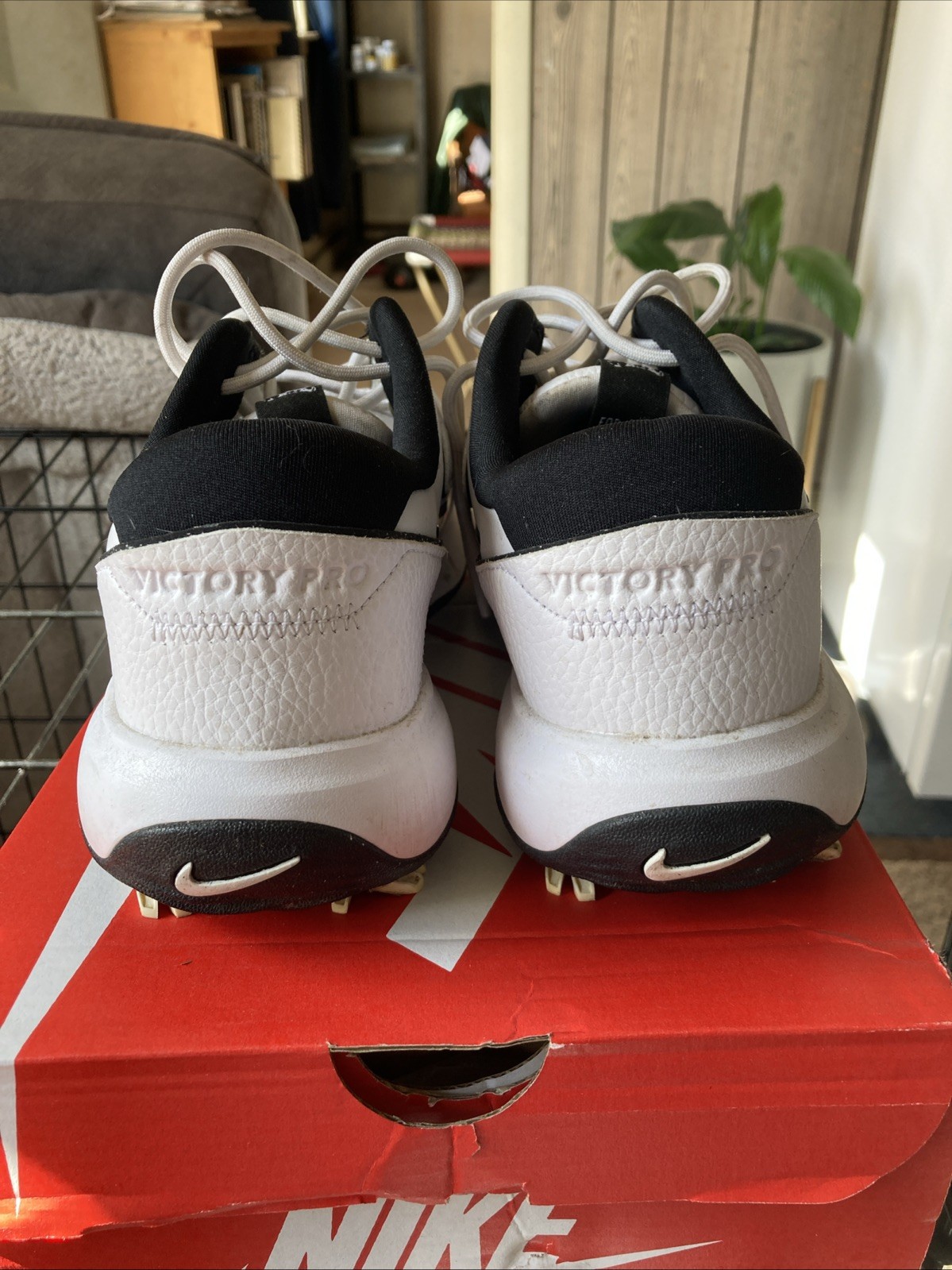 These Nike Victor Pro 3 golf shoes are in fantastic condition—barely worn, no creases, and just a little dirt on the laces and spikes. Super comfortable and great grip, but they run a bit big (I’m a size 7.5). Perfect for someone looking for premium golf shoes at a steal!