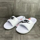 The Nike Victori One Men's size 10 White Black Comfort Slide is a stylish and comfortable slip-on sandal perfect for casual occasions. The black synthetic upper material with a solid pattern and logo accents is ideal for men who appreciate a sporty look. Featuring a rubber outsole for durability, this Nike slide is designed for all-day wear during the summer and spring seasons. The synthetic lining and comfortable design make it a great choice for everyday use. Made in Indonesia, this Nike Victori One model is a must-have for any man looking for both style and comfort in their footwear.