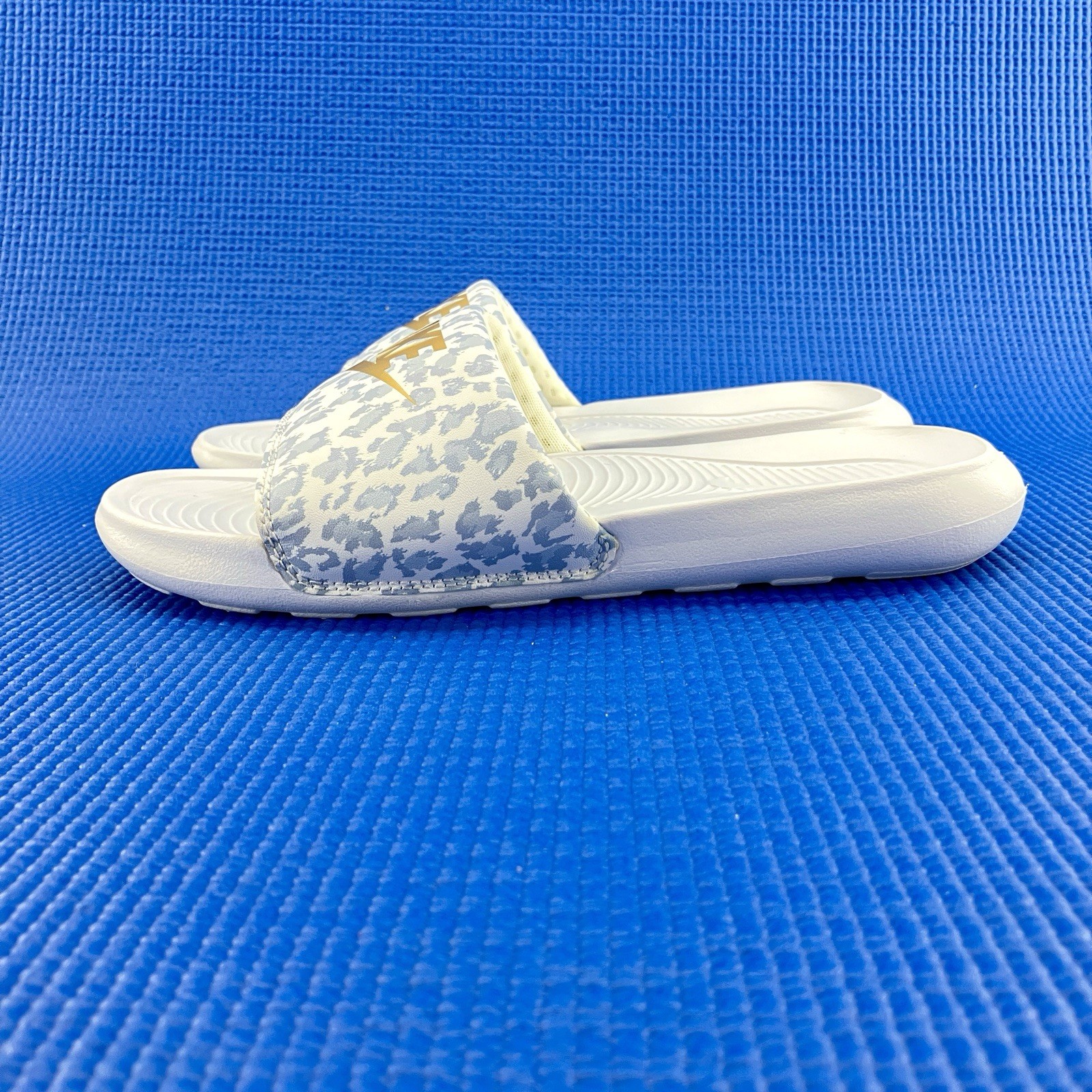 Elevate your summer footwear game with these Nike Victori One Slide Print sandals. These multicolor sandals feature an animal print pattern that adds a touch of wildness to any outfit. The slip-on style makes them easy to wear, while the synthetic upper material ensures durability and comfort. These sandals are designed for women with a US shoe size of 10 and a medium shoe width. They are part of the Nike Victori One Slide Print product line and are perfect for any summer occasion. Add these stylish sandals to your collection today!