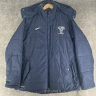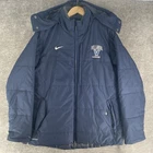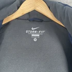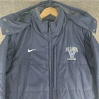 Elevate your activewear game with this Nike Villanova Lacrosse Storm-Fit Hooded Puffer Coat. This mid-length jacket features a solid blue color, full zip closure, and adjustable hood for ultimate protection against the elements. The jacket is made of a blended fabric of 100% polyester outer shell material and polyester lining material, with insulation material also made of polyester. The Nike Storm-FIT product line ensures limited edition design with features like collared neckline, easy care, inner pockets, and all-season suitability. Perfect for gym & training, baseball, cross training, CrossFit, lacrosse, and basketball, this jacket is a must-have for any sportsman. Get your hands on this regular fit jacket with size M and winter, summer, fall, and spring season suitability. TEAM ISSUED