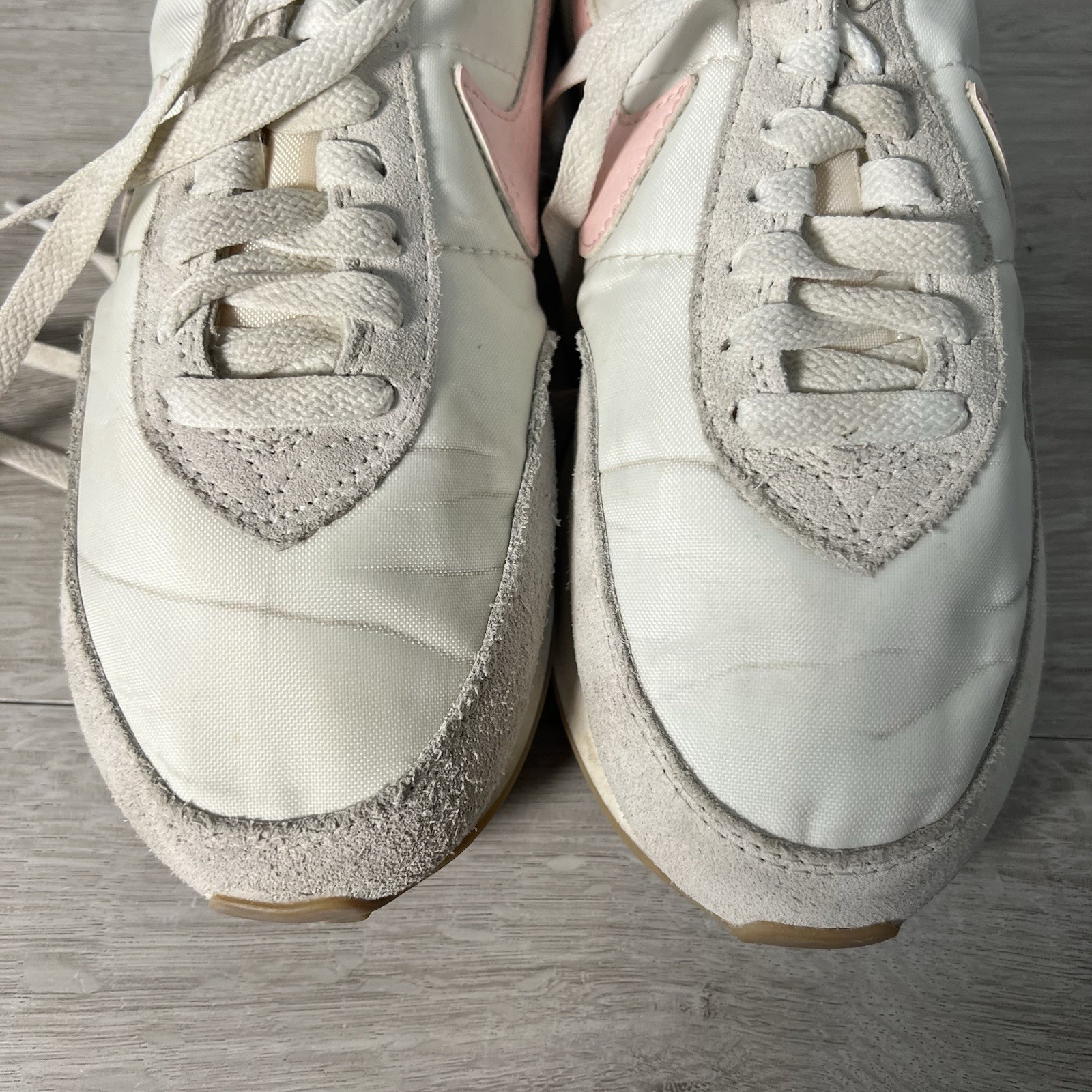 The Nike Waffle Trainer 2 DA8291-004 in UK White Pink is a stylish and comfortable sneaker designed specifically for women. With a lace-up closure and a low-top shoe shaft style, these athletic shoes are perfect for both casual and activewear occasions. The rubber outsole and cushioned insole provide durability and comfort, while the lightweight and breathable design make them ideal for summer, fall, and spring seasons. The textile/synthetic upper material and textile lining ensure a high-quality feel, and the Nike brand guarantees a reliable performance for activities such as gym training, walking, and running.