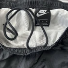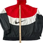 • Jacket has two zippered front pockets • Pants - zippers and elastic at pants cuffs • Pants - elastic waistband with drawstring • Pants - two zippered pockets • Measurements included in photos to assist with sizing. The Nike Windbreaker Windrunner Hooded Track Full Zip Jacket in size XXL and Matching Pants in size XL is a stylish and functional activewear set perfect for running and jogging in the winter, fall, or spring seasons. Made of durable nylon and polyester materials, this lightweight jacket features long sleeves, a full zip closure, hood, and pockets for convenience. #379