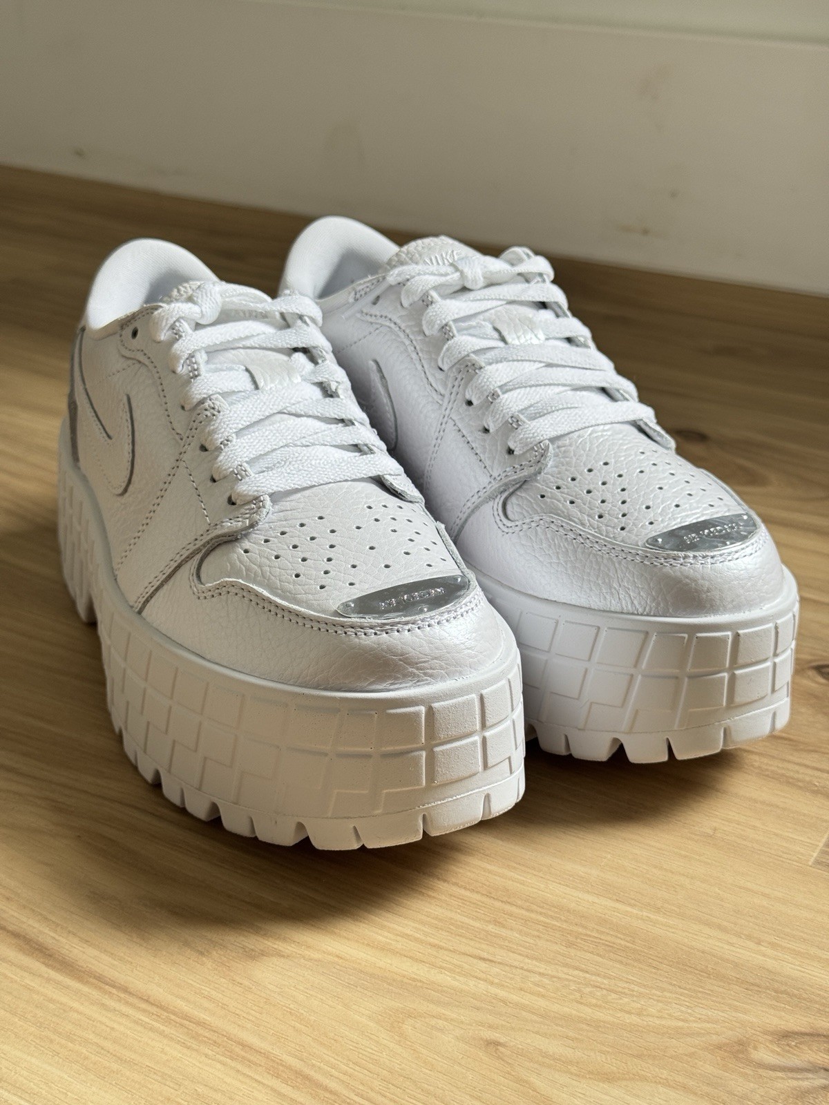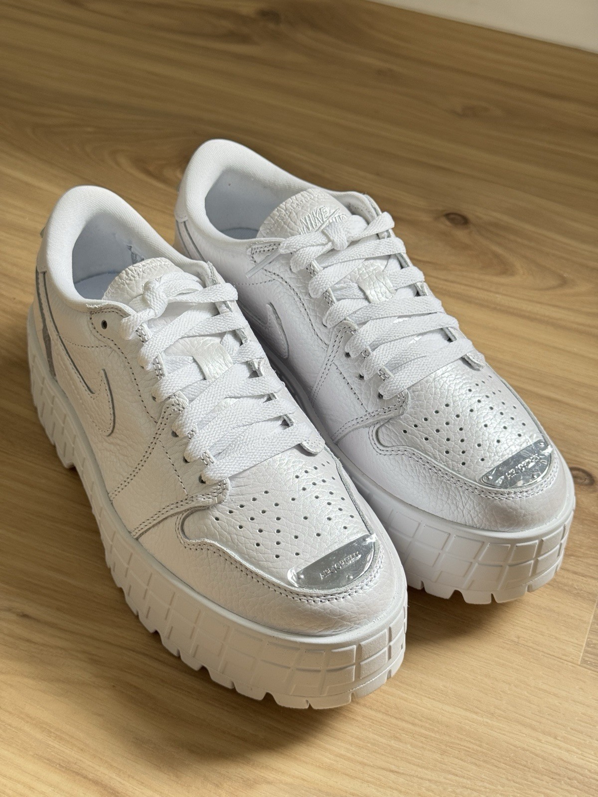 The Women’s Air Jordan 1 Brooklyn Low in the “Triple White” colorway reimagines the classic AJ1 with a bold, elevated platform silhouette. Featuring premium tumbled leather, a sculpted geometric sole, and clean all-white detailing, this pair blends streetwear edge with modern fashion. Pre-owned and kept in excellent condition with no signs of wear. Color: Triple White Style Code: FB9907-100 Premium leather upper Chunky platform midsole with grid detailing Iconic Air Jordan branding Lace-up closure Condition: Pre-owned, excellent No returns.
