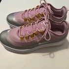 The Nike Women's Air Max Premium Running Shoe Style in size 7Y is a stylish and comfortable athletic shoe designed for women. With a low top design, lace-up closure, and solid pink color with Nike logo accents, this shoe is perfect for running and jogging activities in the spring, summer, and fall seasons. The rubber outsole provides traction, while the foam insole ensures cushioning for a smooth and enjoyable running experience. Ideal for both activewear and casual occasions, this Nike Air Max shoe combines sporty style with functional design for the modern woman.