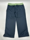 The Nike Capri Pants for women in size M are designed for activewear, featuring a solid black color with green logo embroidery on the pocket. Made from 100% polyester, these athletic fit pants have a drawstring closure and straight leg style, perfect for summer, fall, and spring seasons. Ideal for activities like gym training, yoga, and running, these Capri pants offer both comfort and style with the iconic Nike logo and athleisure theme. Made in Thailand, these pants are a great addition to any woman's activewear collection. Check pictures for Flaws and measurements