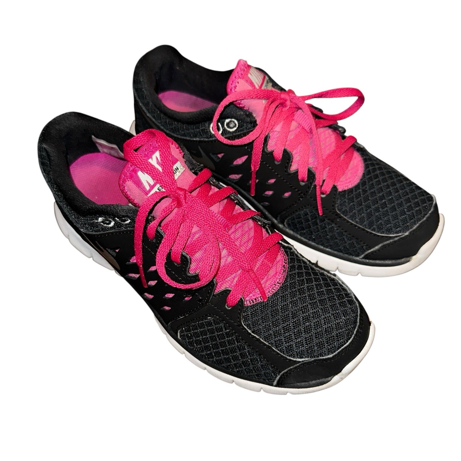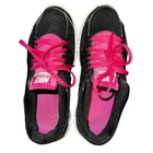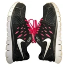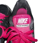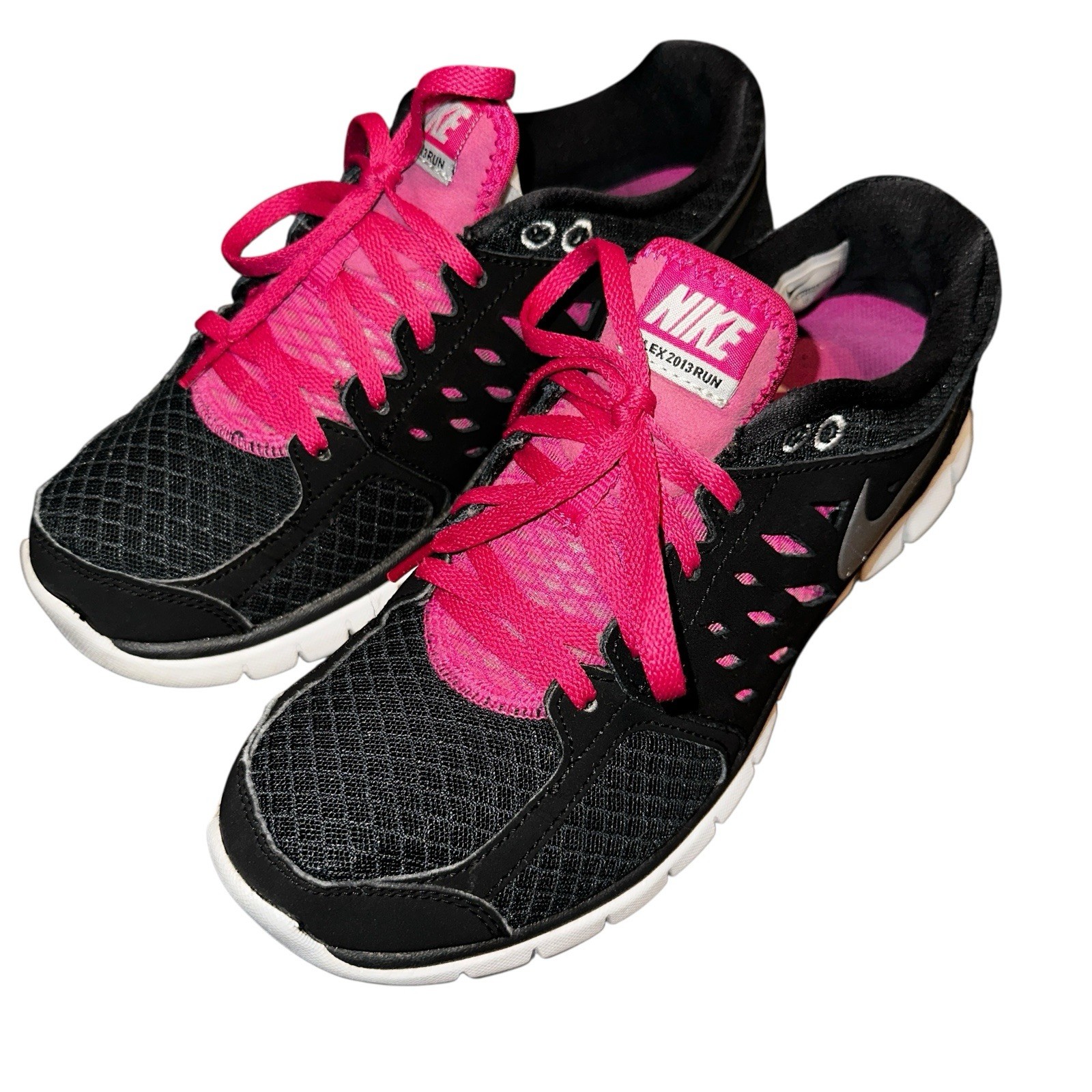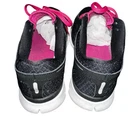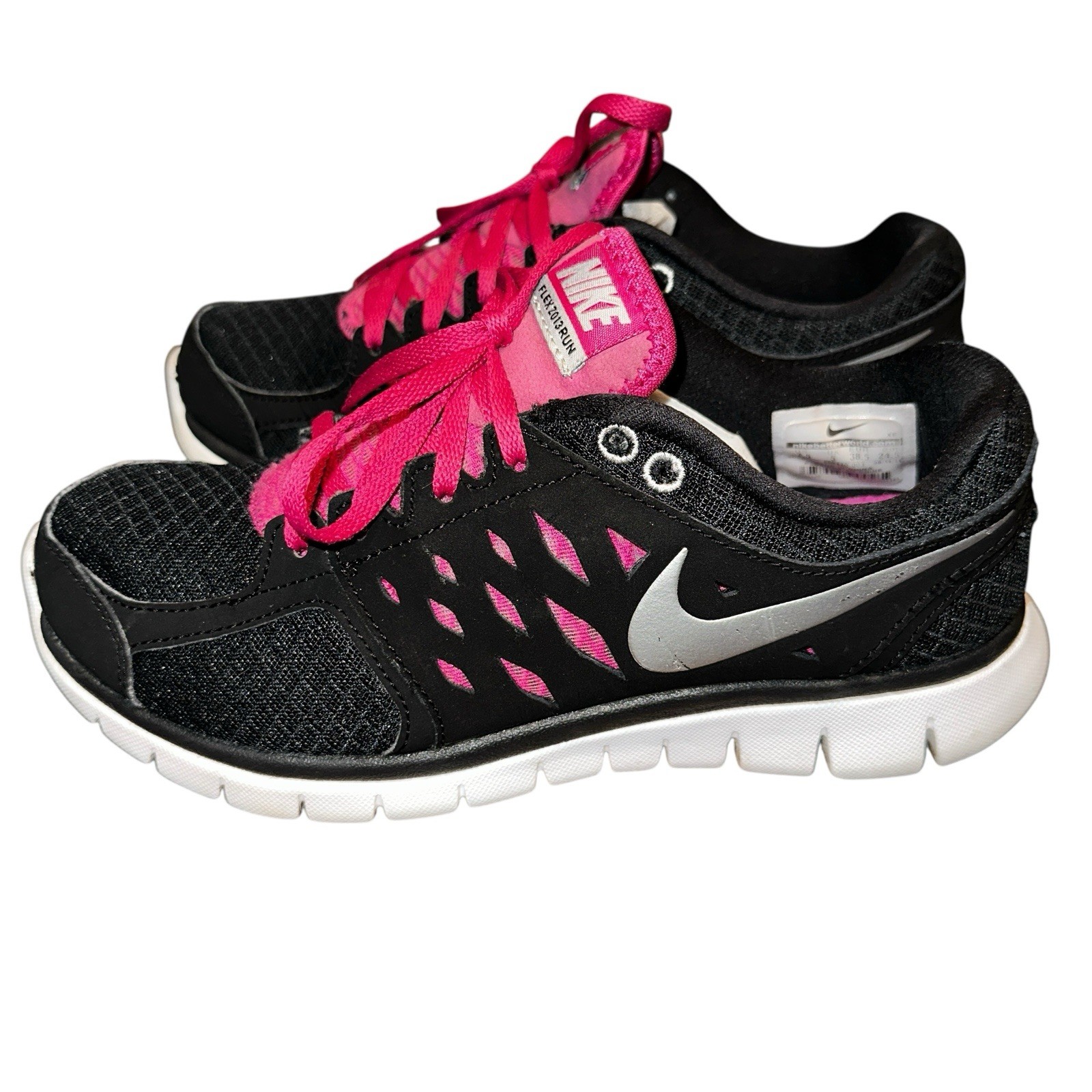 The Nike Women's Flex 2013 Run 580440-003 Black/Pink Running Sneakers Shoes in size 7.5 are a stylish and comfortable option for casual wear or running activities. These lace-up sneakers feature a rubber outsole, breathable synthetic upper material, and a low-top shaft style for a comfortable fit. With accents of Nike's logo and a solid black and pink color scheme, these athletic shoes combine fashion and function for women on the go. Perfect for jogging or everyday wear, these sneakers offer both style and performance.