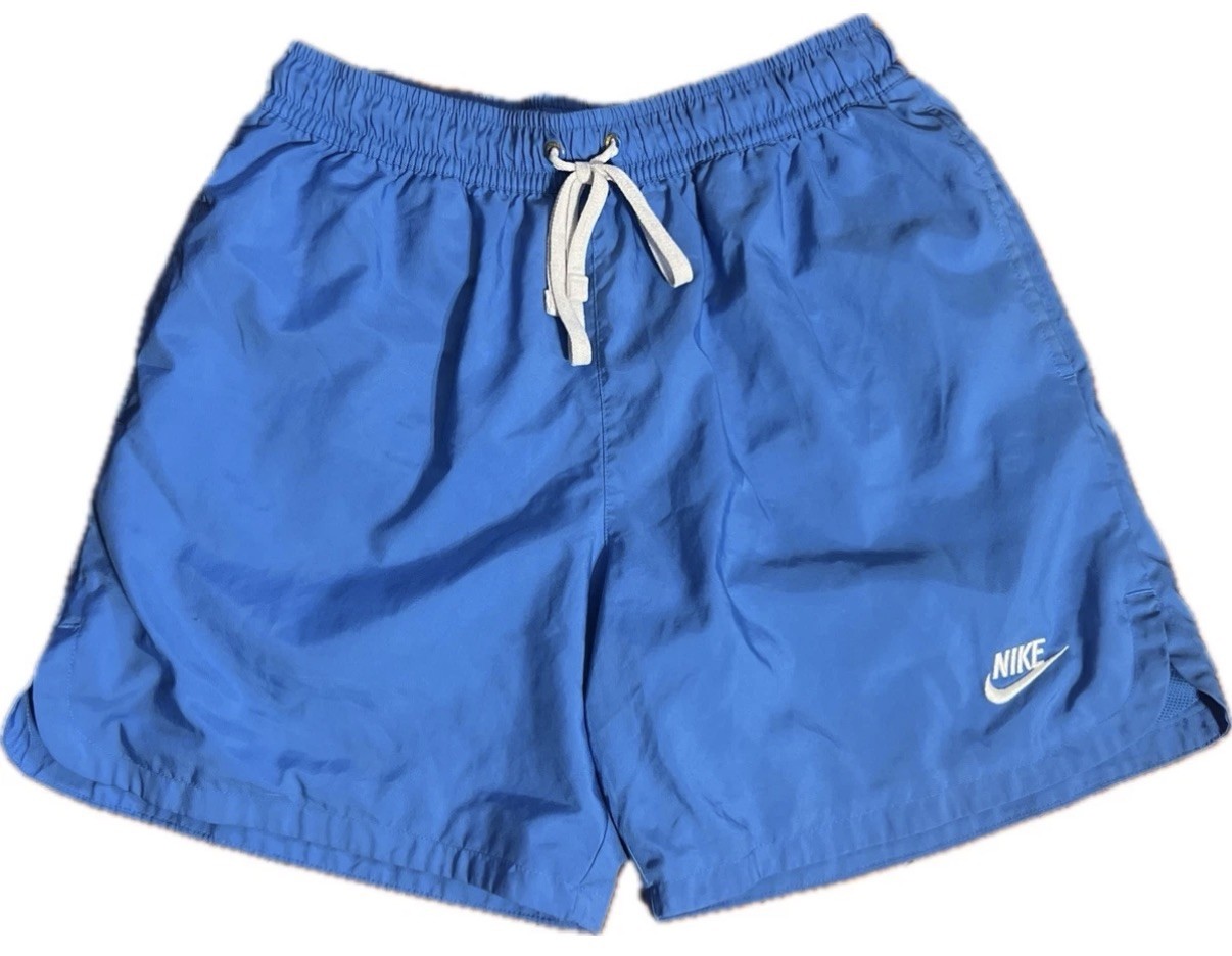 The Nike Woven Flow Club Retro Shorts in blue are a vintage-inspired addition to any man's activewear collection. These athletic shorts feature a drawstring closure, slim fit design, and 5-inch inseam, making them perfect for running, gym workouts, or even basketball games. Made from polyester blended fabric, these retro shorts are machine washable for easy care and are branded with the iconic Nike logo. The solid blue color and slimming features add a stylish touch to these classic athletic shorts, ideal for spring and summer seasons.