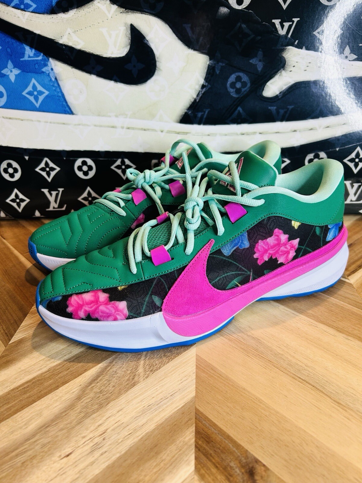 Elevate your game with these limited edition Nike Zoom Freak 5 TB Promo Concepts sneakers. Featuring a colorblock pattern and sold out design, these shoes are perfect for any basketball fan. The lace-up closure and low-top shoe shaft style provide a secure fit for intense activities like weightlifting, running, and cross-training. Made with synthetic upper material and foam insole material, these shoes are cushioned and lightweight for comfort and performance. The rubber outsole material ensures durability for gym and training sessions, as well as casual wear. These shoes are available in US shoe size 12 and UK shoe size 11, with a standard shoe width. Get your hands on these rare Nike Zoom Freak 5 TB Promo Concepts sneakers today.