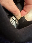 These have been worn very little. However, it looks as if the heel has been pushed down on the right shoe a bit. Take a look at the pictures, please. Otherwise, these are in great preowned condition.