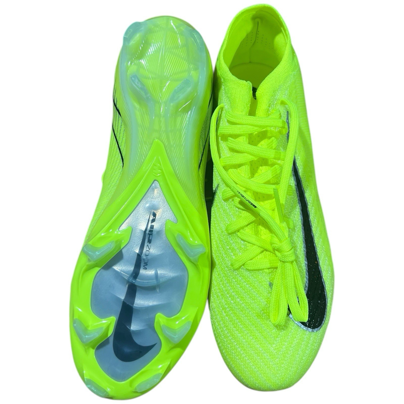 The Nike Zoom Vapor 16 Elite FG Mad Voltage Pack Volt Neon FQ1457-700 in size 6.5 is a striking green sneaker from Nike's Zoom Mercurial Vapor 16 collection. Featuring FlyKnit upper material and a neon theme, this athletic shoe is designed for men who want to make a bold statement on the field. With its high-performance characteristics and stylish design, this shoe is sure to be a standout choice for players looking to elevate their game in 2024.