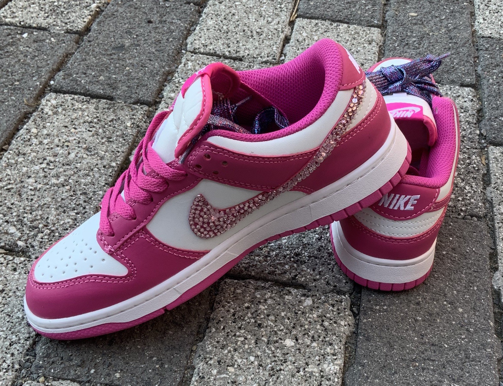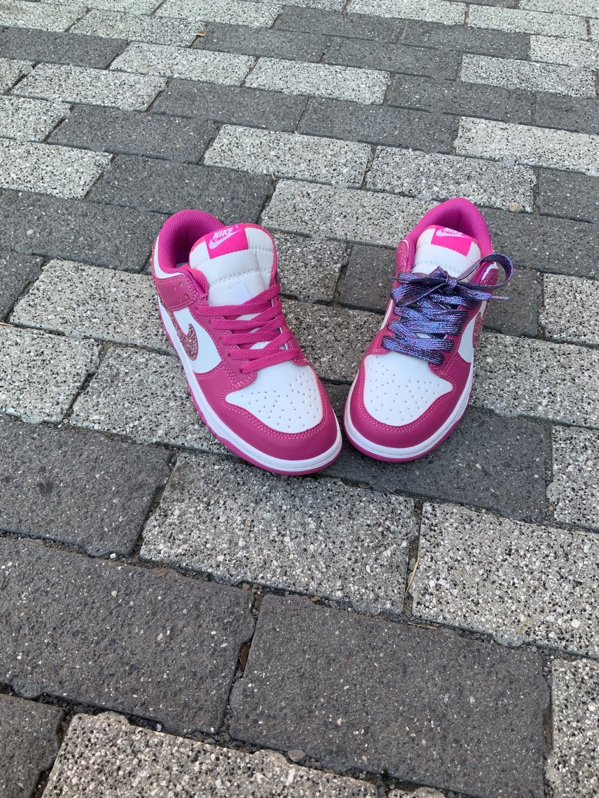 Women’s Nike dunks blinged out size 8 comes with extra pair of bling laces and pvc volt box brand new customized NO RETURNS