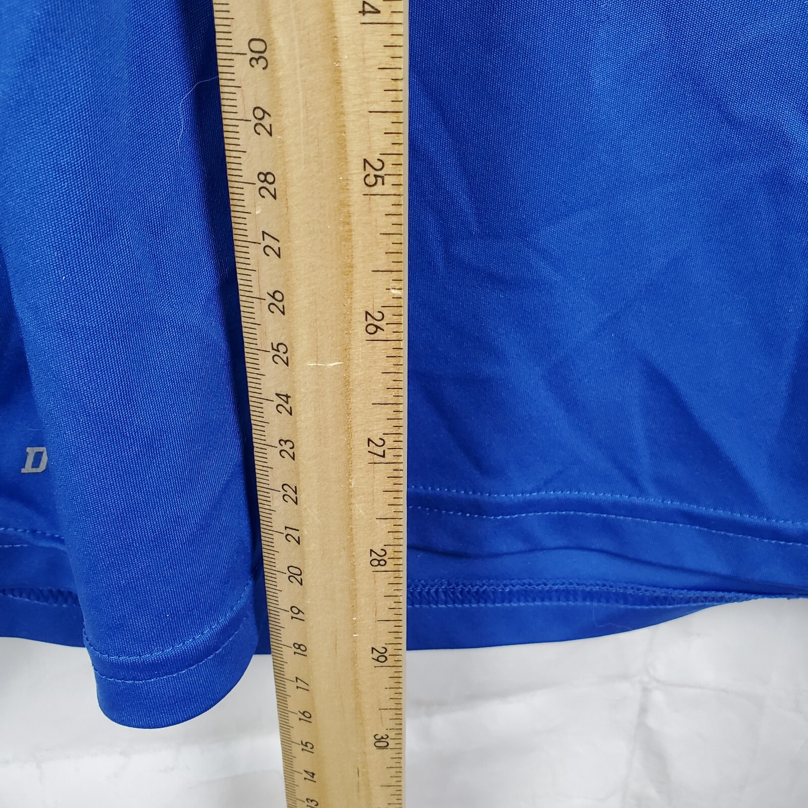 This Nike shirt is super comfortable and breathable—perfect for workouts or casual wear. The Dri-Fit fabric keeps me cool and dry, and the royal blue with grey accents looks sharp. Fits true to size, and the quality is top-notch as expected from Nike. Highly recommend!