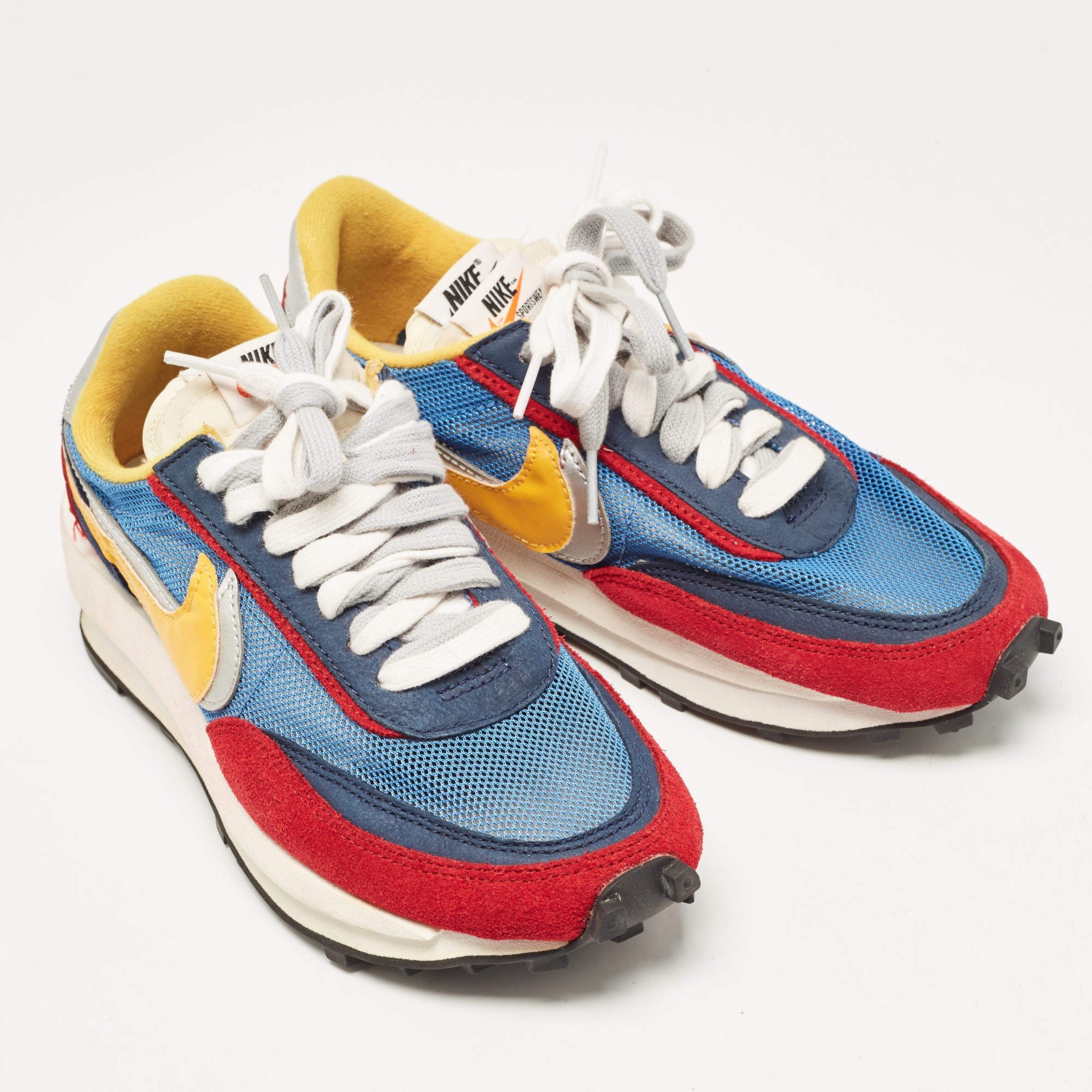 Our eBay Store About Us Contact Us Add to Favorite Sellers Nike x Sacai Multicolor Leather and Suede LD Waffle Varsity Blue Sneakers Size Sporting a dynamic multicolor design, these Nike x Sacai LD Waffle sneakers combine leather and suede for a bold and functional take. Perfect for adding an athletic yet stylish touch to your wardrobe. Product Details Brand Nike x Sacai Color Multicolor Includes The Luxury Closet Packaging Outsole Length 27.5 cm Outsole Width 10 cm Size US 5.5 (EU 38/UK 5) Certified by The Luxury Closet This item has gone through a detailed authentication process overseen by our experts. We offer a lifetime guarantee of authenticity on all our items. How We Check The in-house team of experts at The Luxury Closet is highly trained to verify the authenticity and the condition of the luxury products. They ensure that only 100% authentic items are put on sale.The evaluation process is unique with its own mix of assessment criteria and differs according to the category. Each item is evaluated based on the following combination of hallmarks, hardware, stitching, symmetry, material, craftsmanship, stamping, codes, hologram stickers, and packaging. Our authenticators also check if the items have been modified or amended (e.g., aftermarket diamonds, replaced batteries, repaired bags, etc.) International Buyers Import duties, taxes and charges are not included in the item price. These charges are the buyers responsibility. Please check with your country’s customs office to determine what these additional cost will be prior to buying.