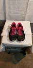 Black with pink strings tongue heel trim and lining swoosh black and white check on inner side of outer shell with pink swoosh. very light.