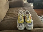 Elevate your active lifestyle with these colorful Nike Air Force sneakers. Designed for women who love athletic shoes, these sneakers are perfect for walking, running, and jogging. The cushioned, comfortable, and breathable features make these shoes the ultimate choice for any activity. With a multicolor design and a theme of colorful, these sneakers are perfect for anyone who wants to add some personality to their workout wardrobe. They come in US shoe size 8 and are pre-owned, so you can enjoy the benefits of high-quality shoes without breaking the bank. Get ready to step up your fitness game with these Nike Air Force sneakers.