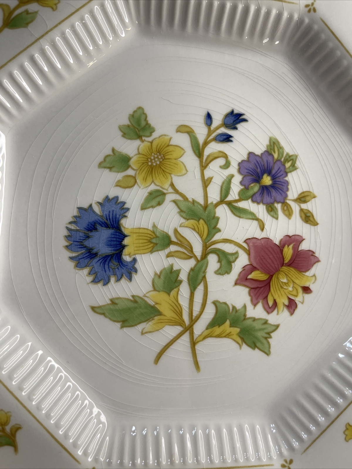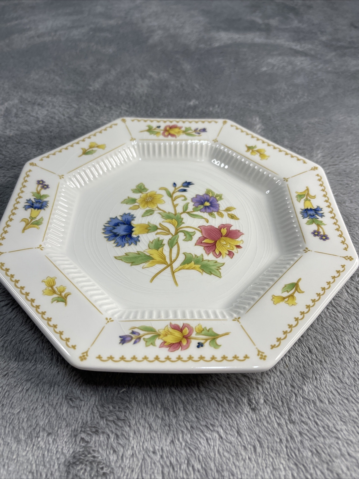 Add some vintage elegance to your dinner table with this beautiful Nikko Classic Collection salad/dessert plate. The plate features a stunning floral pattern in magenta and multi-color, adding a touch of sophistication to your dining experience. Made in Japan with high-quality bone china material, this plate is durable and perfect for any occasion. The plate measures 8 inches. The Nikko brand is known for its classic designs and this plate is no exception, making it a perfect addition to your collection. Whether you're hosting a formal dinner party or enjoying a casual meal with family and friends, this plate is sure to impress. See pictures. Large amount of circular crazing noted on the top side of the plate. No ruff spots on the plate to indicate outer layer damage. Would be pretty on display if you didn’t want to use.