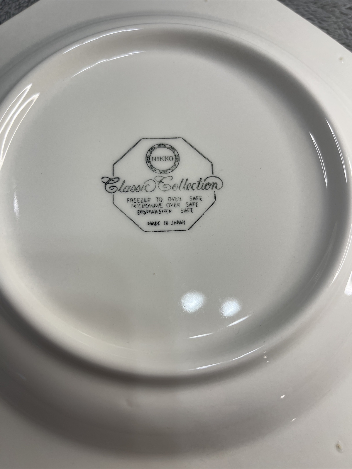 Add some vintage elegance to your dinner table with this beautiful Nikko Classic Collection salad/dessert plate. The plate features a stunning floral pattern in magenta and multi-color, adding a touch of sophistication to your dining experience. Made in Japan with high-quality bone china material, this plate is durable and perfect for any occasion. The plate measures 8 inches. The Nikko brand is known for its classic designs and this plate is no exception, making it a perfect addition to your collection. Whether you're hosting a formal dinner party or enjoying a casual meal with family and friends, this plate is sure to impress.