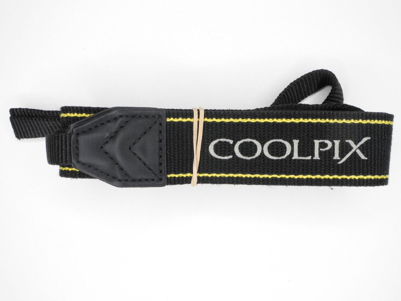 Nikon AN-CP22 Camera Neck Strap For Coolpix P7000 / P7100 / P7700 / P7800 / L120 Description: Condition: BGN This strap is in BGN condition with signs of noticeable wear. The main body of this strap is 1 3/16" and the thinner ends are 7/16". Nikon lists this model of strap as compatible with the cameras listed in the title. The 7/16" ends are much wider than most Nikon Coolpix cameras can accept and I can only verify that this strap will work with the cameras in the title. Condition: LN "Like New" 99% -100% of NEW. EX+ "Excellent Plus" Exceptionally nice. Will show minimal signs of wear. EX "Excellent" Shows moderate wear. Possibly light discoloration but no tears or fraying. EX- "Excellent Minus" Shows signs of wear. Possible discoloration and small signs of fraying but no holes or tears. BGN "Bargain" Shows more than average wear. May have stains, discoloration or fraying but no holes or tears . UG "Ugly" Very rough looking. May have tears, stains, fraying or discoloration.