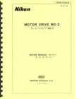 Nikon Motor Drive MD-2 Repair Manual & Parts List for Nikon F2. Detailed 1976 service and repair instructions, illustrated with repair diagrams, exploded views and a comprehensive parts list. R eprint of the factory manual in English & Japanese, 88 pages printed on white paper, 8-1/2"x11" (210x278mm) format. Features heavyweight card stock covers, clear plastic protective overleaf and a plastic comb binding. ***This Manual Reprint is for information purposes only. We do not guarantee successful repair or operational outcomes. We are not a repair shop and cannot provide repair advice or tell you where to locate parts or tools.