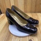 Nina Dress Heels Shoes Women's Size 7.5 Pump Croc Print Square Toe Brown