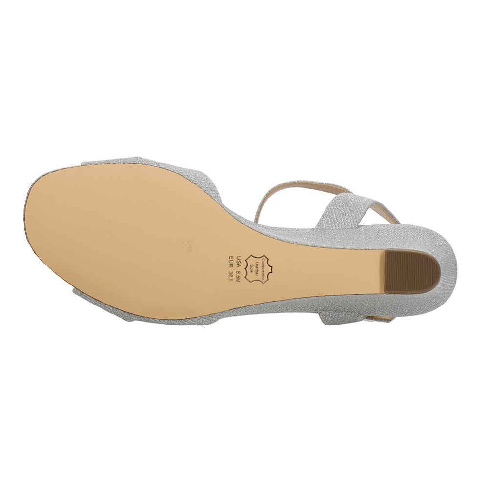Flora Glitter Ankle Strap Wedge Sandals Product Details Lightly cushioned footbed Manmade upper material Color: Silver Treat yourself to Flora by Nina, a contemporary style with slim, criss cross straps that flatter the foot and a slender, wrapped wedge that gives the leg a gentle lift for comfort. Featured in a shimmery, sparkly materialization that creates an understated elegance, this classic, ankle strap sandal effortlessly transforms from a special occasion look to a date night dinner with friends. Additional Details Manufacturer Color: Silver Color: Silver Occasion: Dress Gender: Womens Age: Adult Brand: Nina