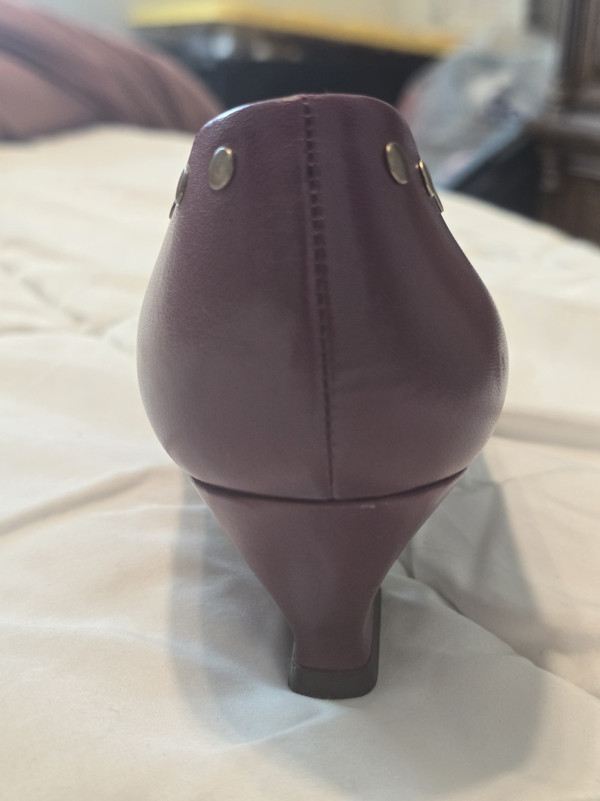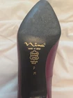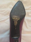 The Nina Ladies Dress Shoes in size 9 are made in Spain with a top flex sole, making them comfortable and stylish for various occasions such as parties or cocktails. These pointed toe, slip-on heels in a beautiful wine color feature a stiletto heel and are crafted from leather, providing a lightweight and comfortable option for the city or clubwear themes. Perfect for the summer, fall, or spring seasons, these pump shoes by the brand Nina are a fashionable choice for any woman looking to add a touch of '80s or '90s flair to her outfit.