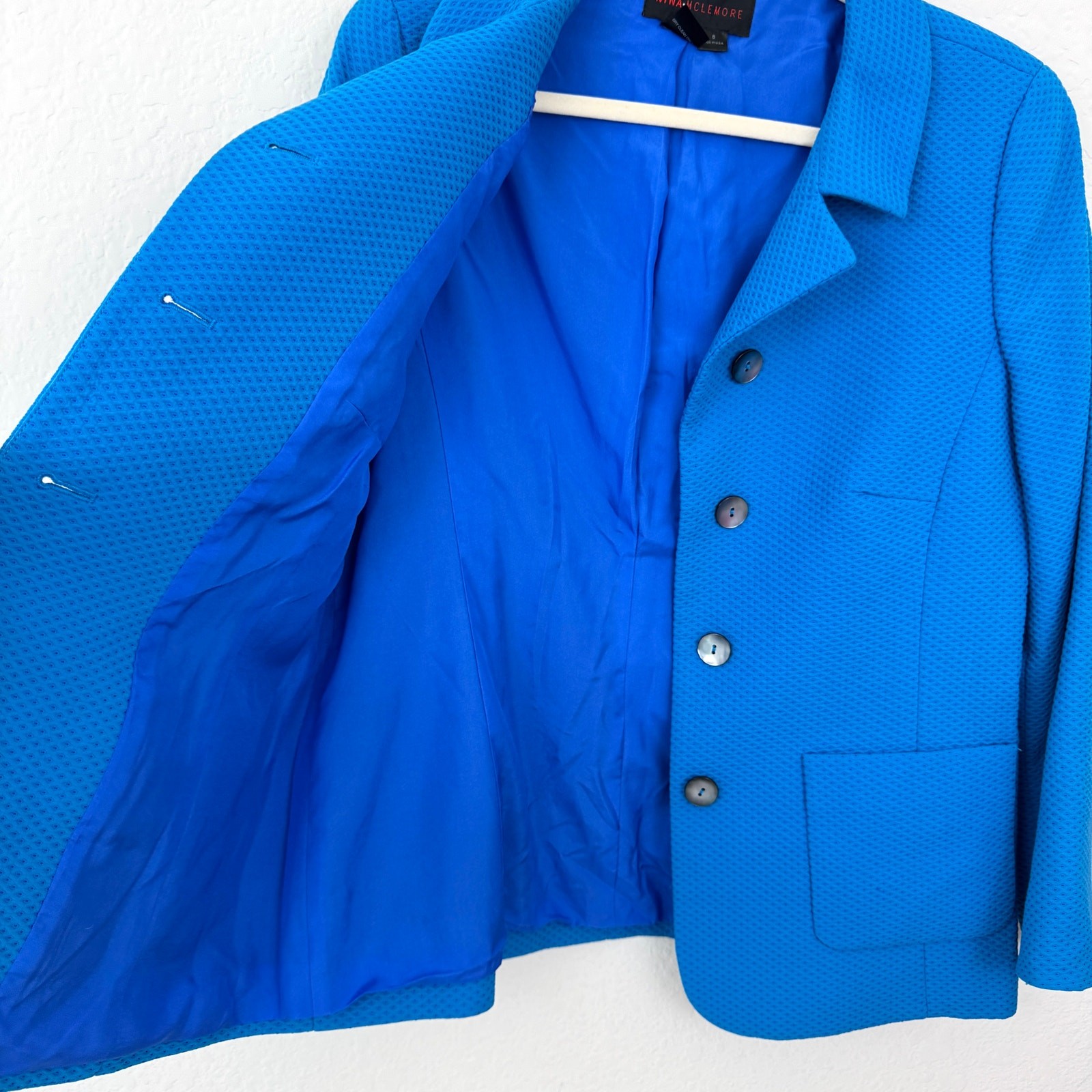 Brand: Nina McLemore Size: 8 Color: Blue Material: Cotton, viscose, silk lining Features: - Lined - Notch collar - Front button closure - Slip pockets Info. to know: In very good pre-loved condition. No stains, holes, or tears. Any zips, buttons, or pockets, if present, work as expected. Please refer to the last photo for approximate measurements to ensure a perfect fit. Tip: Select a similar, well-fitting item from your closet, lay flat, measure, and compare. Style: silk, cotton, bright, office, office life, girl boss, boss babe, boss, business, professional, return to work, business casual, smart casual, career, classic, office wear, work outfit, office attire, corporate, wear to work, 9to5 style, dress for success