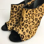 Nina Peep Toe Wedge Heel Leopard Print Calf Fur Size 6.5