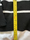 Classic Nine West open-front cardigan featuring black and white horizontal stripes. A perfect layering piece for work, casual wear, or travel.