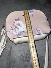 Nine West Floral Handbag Crossbody. Condition is "Pre-owned". Shipped with USPS Priority Mail. This Nine West Crossbody Purse is a stylish addition to any outfit. The floral pattern and bohemian theme make it perfect for those who love a hipster look. It features a zip closure and adjustable strap for convenience. The medium size is perfect for carrying your essentials while on the go. The exterior is made of faux leather in a pink color, while the interior lining is multicolor. In addition, the purse has inner pockets for organization. The cross-body strap makes it easy to wear and the bag is in great shape. It is perfect for everyday use and will complement any outfit.