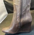 Nine West Heartset Brown Leather Knee High Boot Size 6.5M Brand: Nine West Overall Condition: New in box. See pictures for details. Materials: Leather with man made rubber sole. Shipped with USPS Priority, Flat Rate or, when possible, First Class Mail. Turn up your look with this fierce knee high boot on a chic wedge heel. Knee-length boot with tonal wedge and almond toe. Full-length zip Style: REETA Brand: American Rag Category: Boots Brand Name: Nine West Department: Womens Category: Boots Details for Shopper Size: 6.5 M Shoes Width: 3 inches Heel Height: 3 ¼ inches Heel Type: Wedge Toe Style: Closed Almond Toe Payment Policies We accept payment through PayPal, credit card, and debit card. Please note that the item may be relisted if payment is not received within the 10 day period. Shipping Policies Delivery estimates will be displayed at checkout. In-store pickup is also available if you would like to visit us in store. We ship to Continental United States only. Terms of Sale Each item we sell is unique. There are no exchanges for the same item available. All items are carefully inspected by My Sister’s Closet of Monroe County’s quality control team prior to shipping. Please carefully review item details. If you have questions, please message us regarding the item before purchasing. Note: Due to the different monitor and light effects, the actual color of the item shown might be slightly different from the color in pictures. Return Policy We strive to describe and measure our items accurately. If your order is not what you expected, we accept returns under the following conditions: The item was not as described as listed The wrong item was shipped. The item does not fit. If the wrong item was shipped, we will attempt to replace it with the item originally ordered. Please note - items not returned in the exact same condition, with tags attached, may be subject to a partial refund to account for loss of the item’s value. Please refer to eBay Return policy for more details. You are covered by the eBay Money Back Guarantee if you receive an item that is not described as listed. Return Requirements: The buyer must return the item within 30 days of receipt. Buyer is responsible for return shipping charges. The item(s) must be returned in the original condition, unworn, with tags attached. Thank you for shopping with us! A little bit more about us… My Sister’s Closet is a nonprofit serving women in poverty since 1998. Our mission is to help women move closer to economic self-sufficiency by providing essential career development tools. This includes job training, mentoring, advocacy services, and professional attire for job interviews to help them find employment. We have helped over 2500 women thus far. Most clients we serve have been dealing with homelessness, domestic violence, illness, divorce, job loss, economic recovery and/or lack basic education. Visit Our eBay Store
