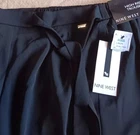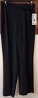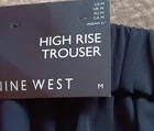 The Nine West High Rise Trousers in size M are sleek black dress pants designed for women. measures length 42 inches and waist 30 inches and 31 inch inseam.These trousers feature a regular fit and high rise waist, offering a stylish and flattering silhouette. Made by the reputable brand Nine West, these pants are perfect for adding a touch of sophistication to any outfit. with Nine West emblem on front with side tie belt