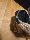 Nine West Love Fury Tote Bag in black and gold sequins is a bold and stylish statement piece that blends glam with practicality. It features: Exterior: Black satin base with shimmering gold sequins on top for a dramatic contrast Size: Large tote — approximately 21" wide × 13" high × 7" deep Closure: Zip and hook & loop for secure storage Material: Polyvinyl exterior with black lining Style: Perfect for evenings out, fashion-forward errands, or turning heads at brunch New Old Stock – Nine West Love Fury Tote Bag (Black & Gold Sequins) This stunning tote is a rare New Old Stock (NOS) find — never usedand still in pristine condition. Originally released by Nine West, it features a dramatic black satin base with shimmering gold sequins, making it a standout accessory for any wardrobe. Condition: Unused, with original tags (if available); stored carefully to preserve its original quality Era: Manufactured in the early 2010s (approximate) Style: Glamorous and bold — perfect for collectors or fashion lovers seeking vintage flair Note: As a NOS item, this bag may show minor signs of age from long-term storage (e.g., slight creasing or dust on hardware), but it has never been worn or used