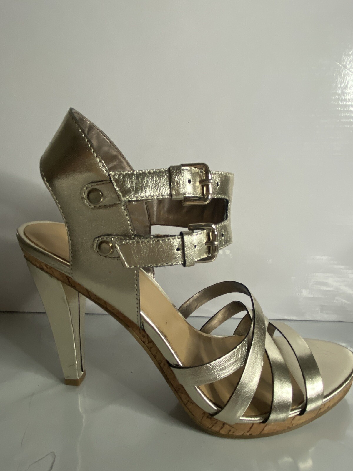 Nine West Shiny Gold Women Heel Sandals size 7.5 M New condition Heel: 4.5"