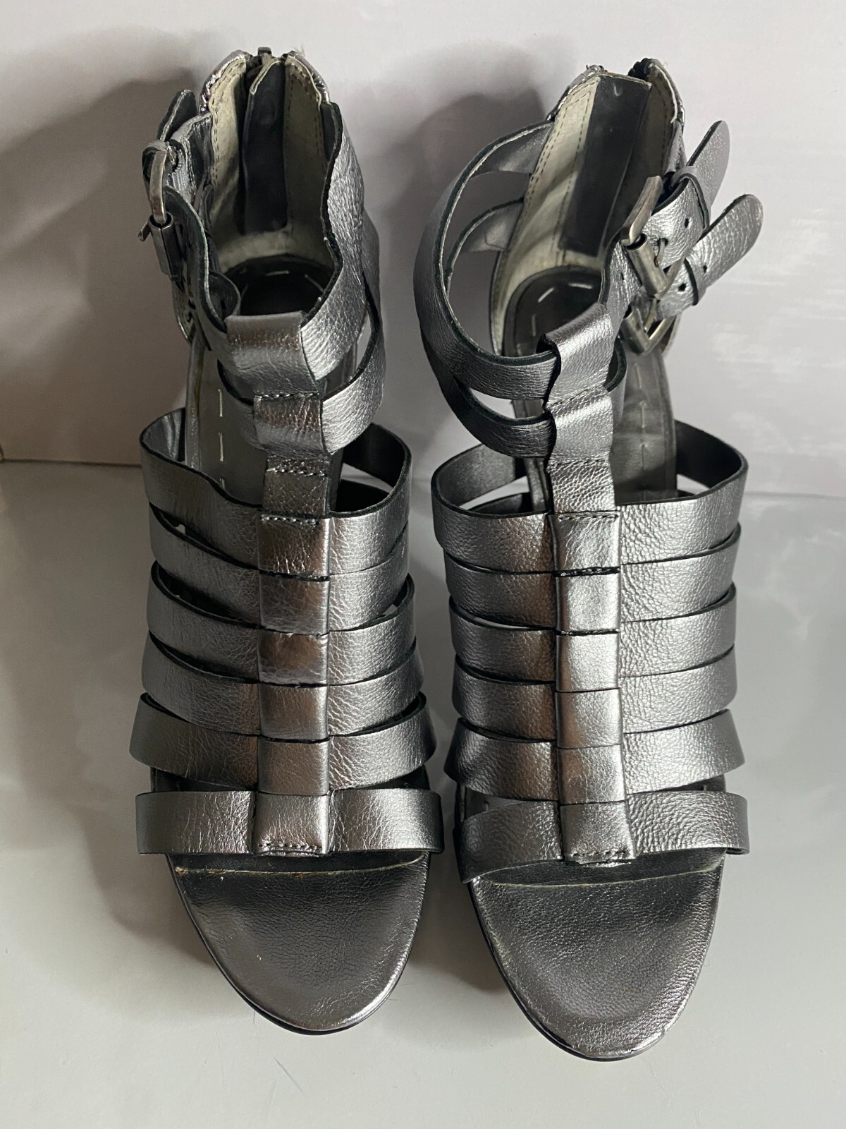 Nine West Silver Women Heel Sandals size 7.5 M Excellent condition. Heel: 4.25"