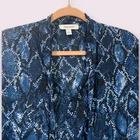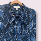 Nine West Snakeskin Print Long Sleeve Tie Neck Blouse Gorgeous Blue & Black Snakeskin Print Size XL Armpit to armpit is approximately 23 inches Top to bottom is approximately 30.5 inches Super Chic & Comfy Split V Neck Tie Neck Can easily be Dressed Up or Down Brand New without Tags NWOT Make sure to Compare Measurements to items you already own & love to ensure a Good Fit before placing an order & for best buying experience ! We Ship out all purchases within 1 business day of payment. Automatic $10 flat Rate Combined Shipping on all items added to cart & paid for together in 1 order. 30 day Free Returns just in case you don’t Love it ! Happy Shopping 😊