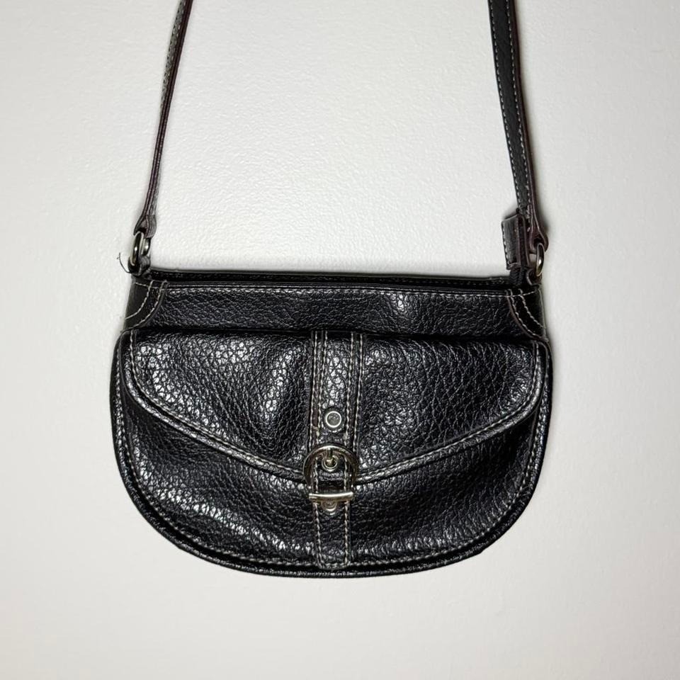 Vintage Y2K Nine West Black Leather Mini Shoulder Bag - Authentic Nine West - Black genuine leather 🖤 - Mini shoulder / crossbody style - Y2K / early 2000s vibe - Gold-tone buckle front detail - Zip top closure + inner pocket - Adjustable strap - Perfect everyday or night-out bag - Pre-loved condition, light wear from age (see photos) #ninewest #vintagebag #y2kbag #leatherbag #shoulderbag