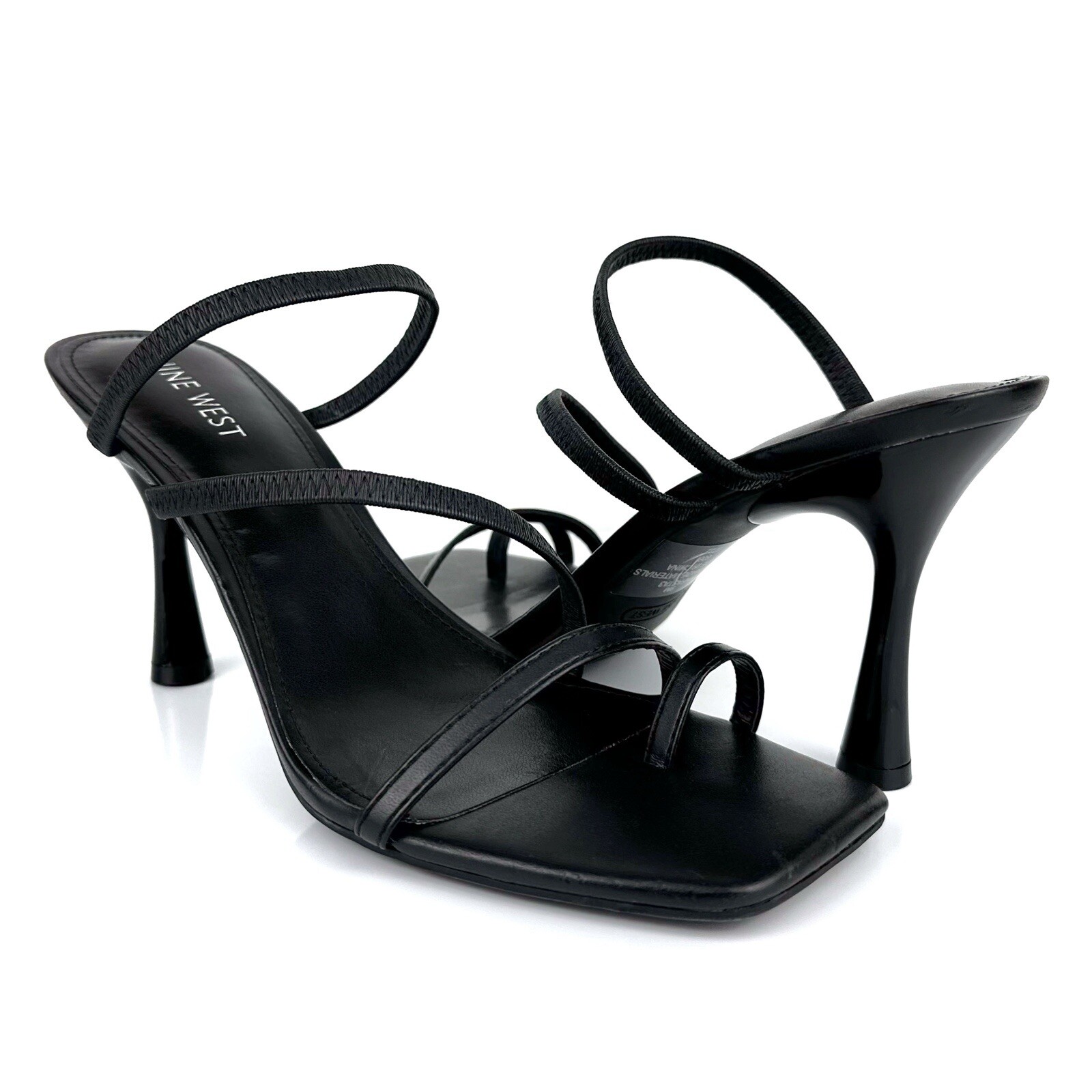 Nine West Women's Fasta 3 Strappy Slip On Sandals in Black are perfect for any formal or party occasion. The slip-on style with straps and a padded feature makes them comfortable to wear all day. Features/Style: - Slip On - Strappy - Open Toe - Stiletto Heel - Lightly Padded Footbed - Material: Faux Leather Upper Size: 9M Color: Black Measurements (approximately): Heel- 3.8" Condition: NEW without box, has some marks from storing not noticeable (please check the pictures), Smoke Free Home