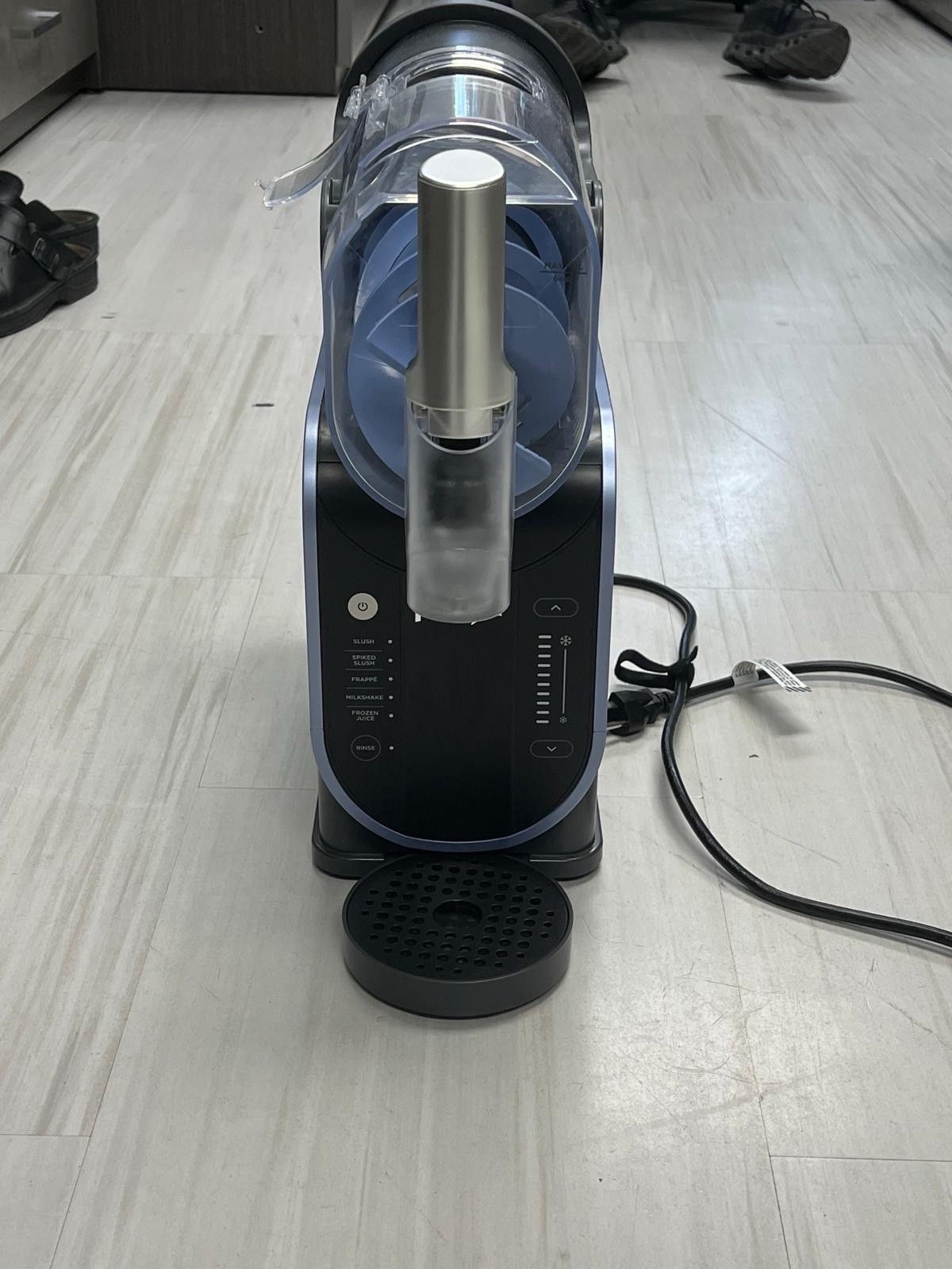 This item has only been used a few times and is in like new condition. This Ninja slushie machine is the perfect addition to your kitchen! With a capacity of 88 oz, and 5 preset options, it can create delicious and refreshing slushies for you and your family to enjoy. This machine is designed to blend ingredients effortlessly, ensuring that your slushies come out smooth and flavorful. Whether you're hosting a party or just want to treat yourself to a cold beverage on a hot day, this Ninja slushie machine is the way to go. It's easy to use and clean, and its compact design makes it a great fit for any kitchen. Get ready to create delicious slushies with this powerful and efficient machine. All you have to do is just pour in your beverage and wait around 20 minutes and it’ll turn into a refreshing slushy.