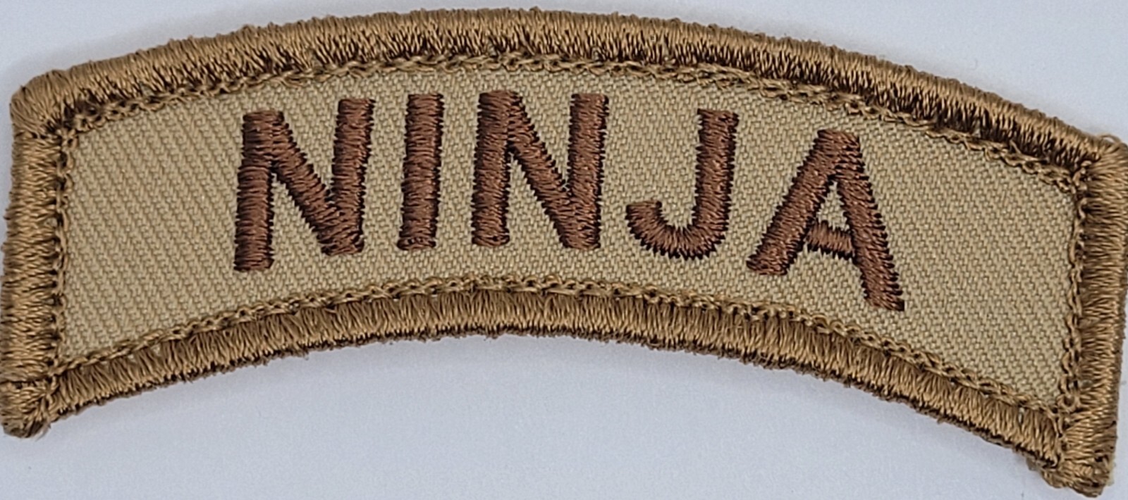 NINJA Color: desert tan and brown Shape: Rectangle / Arc Type: Embroidered Back: Tactical/ Hook For EASY APPLICATION Tactical patch fully embroidered for backpacks, clothes, caps, bags and military uniforms. Hook backing
