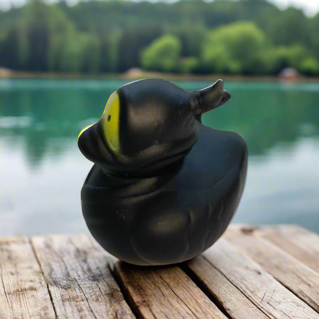 Ninja Black Rubber Duck will only attack at midnight! Rubber Duck approximately 2" tall. Not guaranteed to float upright. Comes with a random WISE QUACK note of inspiration and humor!