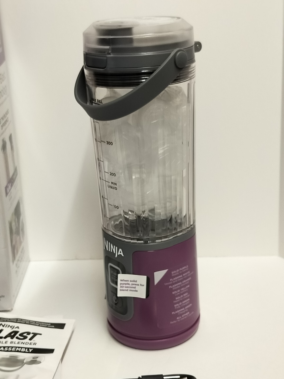 Ninja Blast 16oz Portable Blender USB-C Rechargeable Purple BC100PR New. This is a Ninja Blast 16oz Portable Blender that be powered by a battery. The blender is purple. It has one speed and is branded as Ninja. The type of personal blender is suitable for blending drinks and has a capacity of 16oz. Condition is New open box. Shipping the same or the next business day. Thanks for looking. (W675-A12)